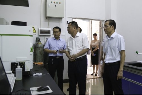 在重点实验室参观时,李副厅长对我校紧密结合地方产业发展,突出办学特色进行予以了肯定,并希望在今后的科研工作中,进一步深化和落实与企业的合作,提高科研成果转化水平。